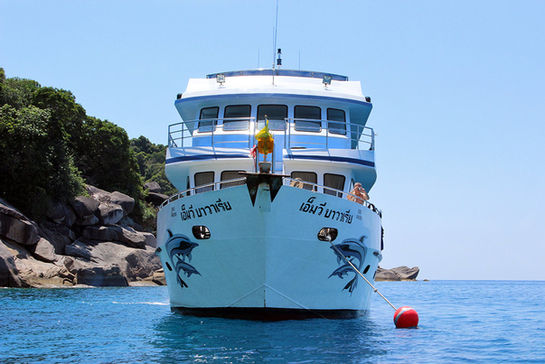 Meeting at the Loma Diving Adventure diving school in Khao Lak for check-in no later than 3:00 p.m., put together the equipment and deal with the formalities. Around 4:30 p.m. transfer by minibus to the port in Chalong. Check-in on the MV Bavaria, which will be moored at the pier of Chalong (Phuket), boat briefing and dinner, departure time is around 9:00 p.m.